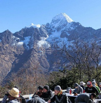 Amadablam(6,812m-22349ft), Amphu Lapcha(5,663m-18579ft), Laboche peak(6,119m-20075ft), Island peak(6,189m-20305ft), Mt. Nuptse(7,861m-25790ft), Lhotse(8,516m-27939ft), Makalu(8,463m-27765ft), Baruntse(7,162m-23497ft ), Cholhaste, Thamserku, Kangtega and Tawache peak are major attractions of today.